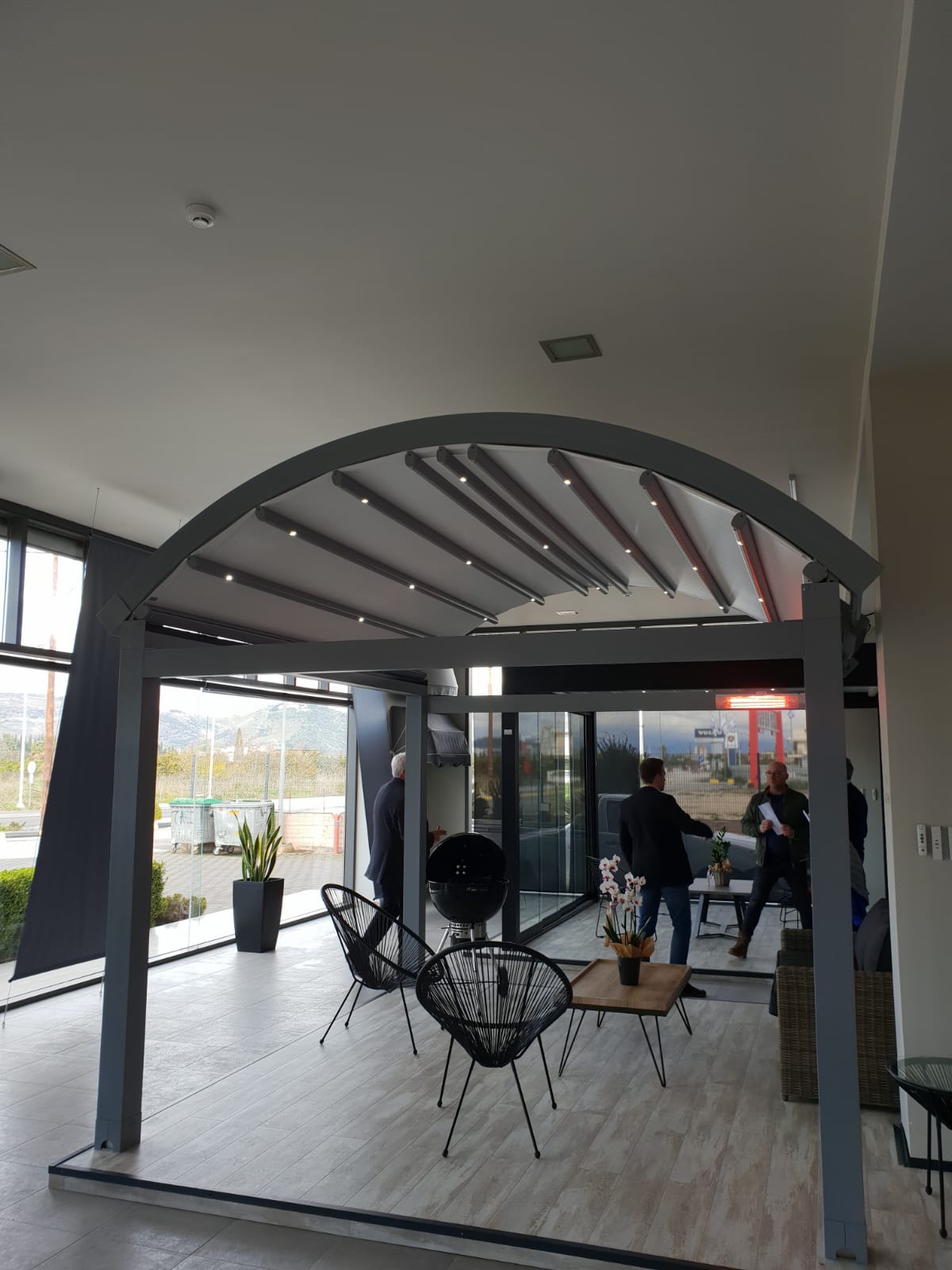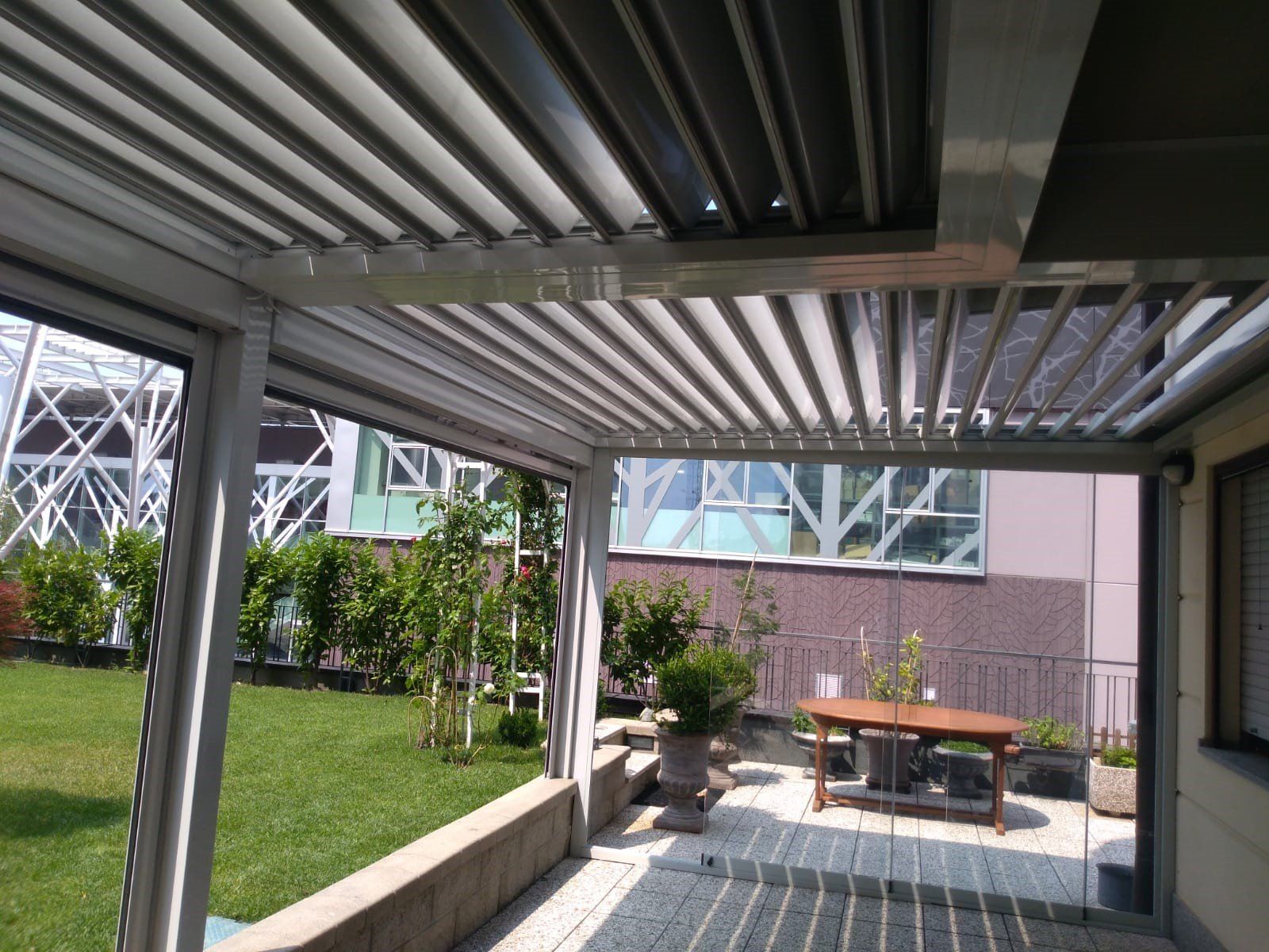 pergole bioclimatiche sono strutture outdoor in alluminio, provviste di una copertura con lamelle frangisole orientabili grazie all'utilizzo di un radiocomando o, in alcuni casi, manualmente.